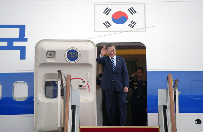 ▲ 문 대통령, 출국 인사 중국에서 열리는 한중일 정상회의에 참석하는 문재인 대통령이 23일 오전 서울공항 공군1호기에서 환송인사들에게 인사하고 있다. 연합뉴스 제공 |