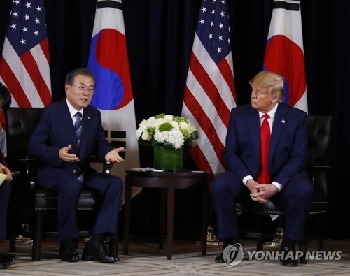 9번째 회담하는 문재인 대통령과 트럼프 대통령/연합