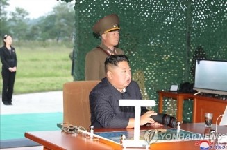 김정은, 초대형 방사포 시험사격 지도…여동생 김여정 수행/연합