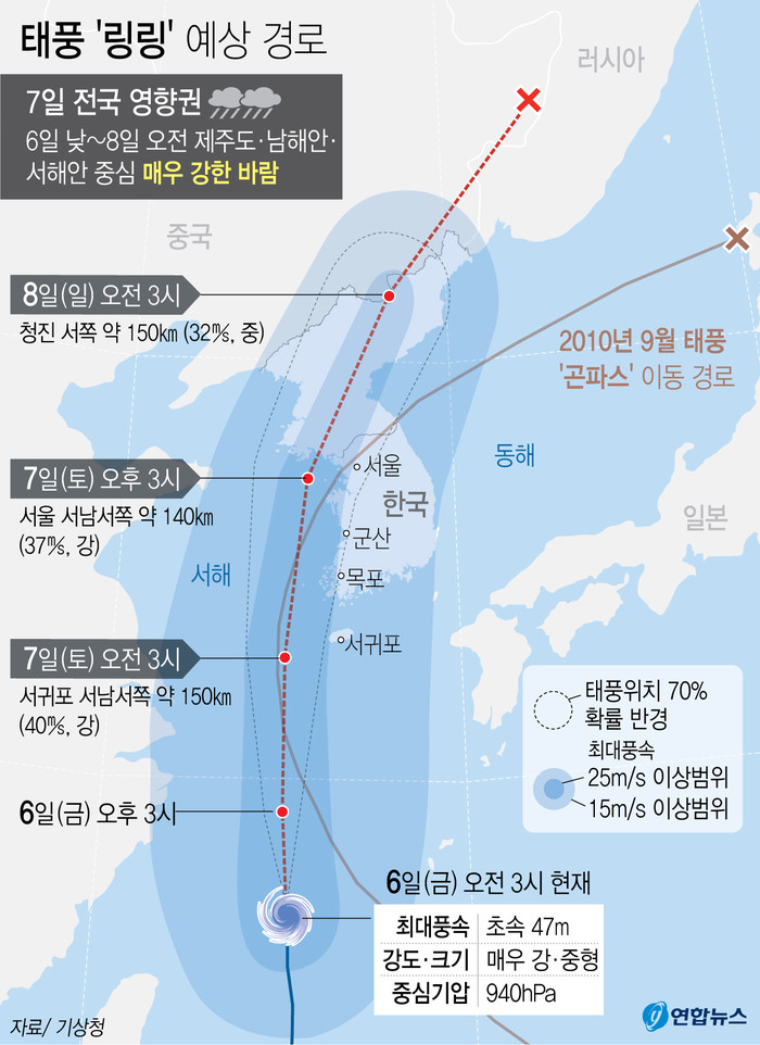 6일 기상청에 따르면 '링링'은 이날 오전 7시