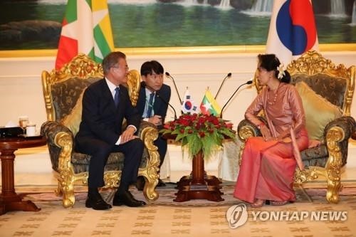 文대통령 "미얀마 라카인 해결 노력" 수치 "한반도평화 중요"