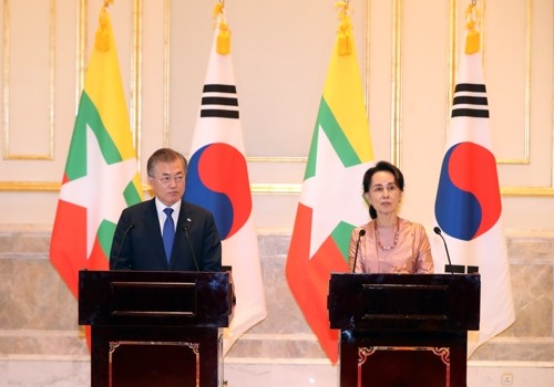 아울러 문 대통령은 "양국은 개발 분야에서 활발한 협력을 통해 상생번영을 촉진하기로 했다"며 "한국은 미얀마에 대한 대외경제협력기금(EDCF)을 10억불로 확대해 안정적 개발 협력을 위한 기반을 마련했고, 미얀마 개발연구원(MDI)·무역진흥기구(MYANTRADE) 등과 함께 한국 경제발전 경험을 공유하게 될 것"이라고 말했다.