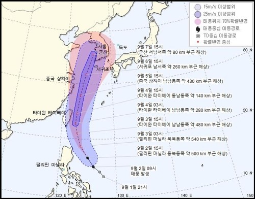 특히 한반도에 접근할 무렵에는 지금보다 크고 강해질 것으로 전망돼 대비가 필요하다.