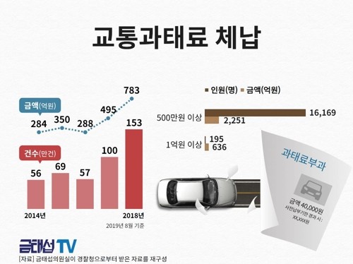 교통과태료 500만원 이상 체납자 1만6천명…195명은 1억 넘어