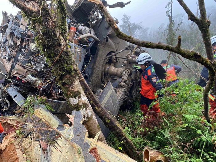 ▲ 대만군 블랙호크 헬기 추락 현장 조사 대만 구조대원들이 2일 이란(宜蘭)현 산악지대의 블랙호크(UH-60M) 헬리콥터 추락 현장을 조사하고 있다. 이날 오전 대만군 최고위 인사 등 13명이 탑승한 블랙호크 헬리콥터가 추락해 선이밍 참모총장 등 8명이 숨졌다. 연합뉴스 제공 |