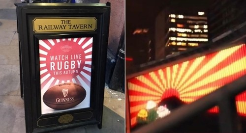 ▲ 영국과 아일랜드의 럭비 월드컵 관련 욱일기 홍보물들/연합 |