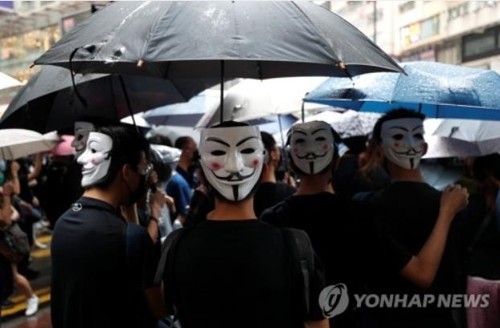앞서 지난 4일 홍콩 정부는 시위 확산을 막는다며 공공 집회나 시위 때 마스크 착용을 금지하는 ‘복면금지법’을 발표하고 5일 0시부터 이를 시행했다. 이를 어기면 최고 1년 징역형에 처할 수 있다.