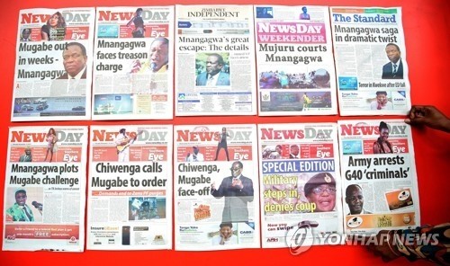 무가베 몰락 보도하는 짐바브웨 신문들
