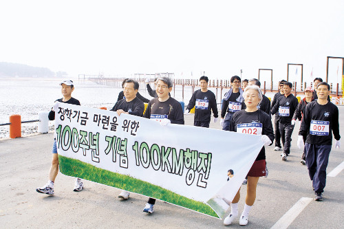 ▲ 2007년 중앙성결교회 창립 100주년을 맞이해 전남 신안군 증도에서 열린 모퉁이돌 장학재단 설립을 위한 100㎞ 행진 모습. 중앙성결교회 제공 |