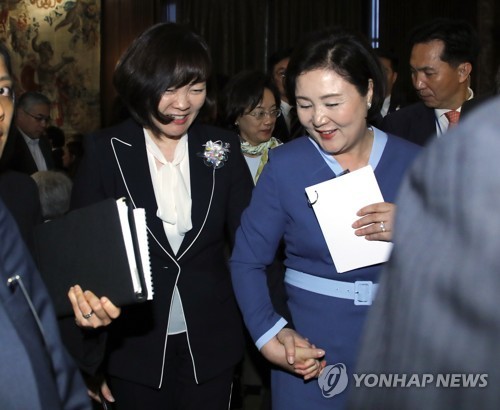 문재인 대통령의 부인인 김정숙 여사(오른쪽)와 아베 총리의 부인인 아베 아키에 여사(왼쪽)