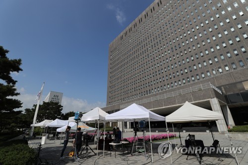 ▲ 검찰 앞 방송사 텐트들 서울 서초구 서울중앙지검 앞. |
