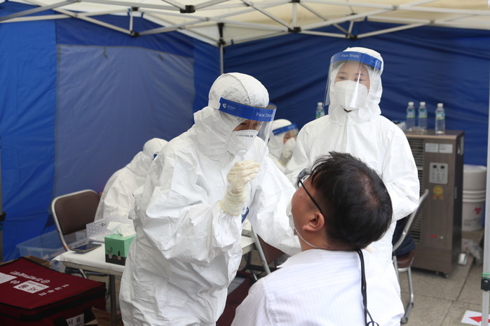 ▲ 한 시민이 서울시내 선별진료소에서 코로나19 검사를 받고 있다/ 사진= 아시아뉴스 DB. |