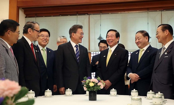 ▲ 문재인 대통령(사진 중앙)과 강창일 주일 대사(우측 두 번째)/ 사진= 청와대 제공. |