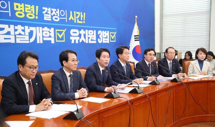 ▲발언하는 이인영 원내대표 더불어민주당 이인영 원내대표가 12일 서울 여의도 국회에서 열린 정책조정회의에서 발언하고 있다. 2019.12.12 연합뉴스 제공 |