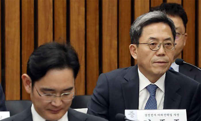▲ 질의듣는 김종중 전 삼성 미래전략실 사장. 연합뉴스 제공 |