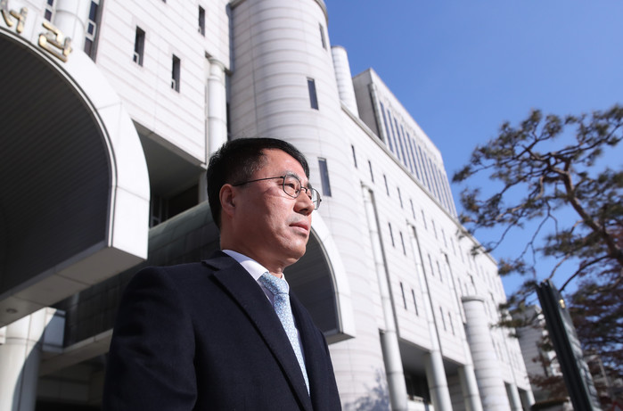 ▲ '사법농단' 법원 첫 판단, 유해용 선고공판 출석 '사법행정권 남용 의혹'으로 기소된 유해용 전 대법원 수석재판연구관이 13일 오전 서울 서초구 서울중앙지방법원에서 열린 선고공판에 출석하고 있다. 2020.1.13 연합뉴스 제공 |