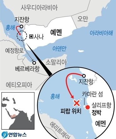지난 18일 예멘 서해상에서 한국인 2명 등 16명이 탄 선박 3척이 예멘 후티 반군에 나포됐다.