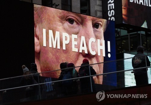 지난 2017년 12월 뉴욕 타임스퀘어 전광판에 게재된 트럼프 탄핵 요구 광고/연합
