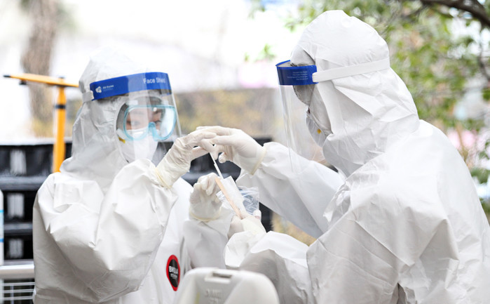 ▲ 서울의 한 보건소 선별진료소에서 의료진이 코로나19 검체를 채취하고 있다/ 사진= 아시아뉴스DB. |