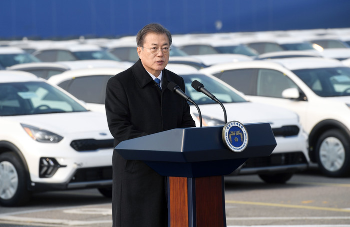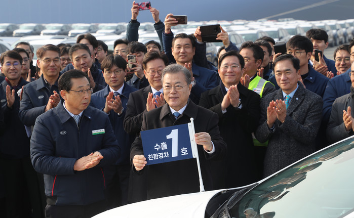 문재인 대통령은 3일 "친환경차 수출에서 시작된 상생 도약 기운이 2020년 새해 우리 경제에 커다란 활력이 될 것"이라고 말했다.