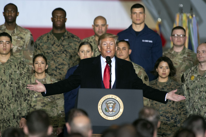 ▲도널드 트럼프 미국 대통령이 20일(현지시간) 워싱턴DC 근교 앤드루스 공군기지에서 2020회계연도 국방수권법(NDAA)에 서명하기 전 연설하고 있다. 연합뉴스 제공 |