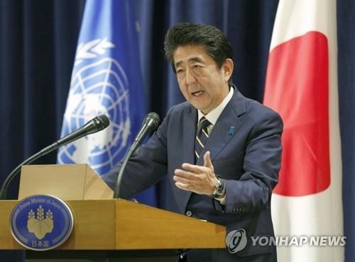 ▲ 아베 일본 총리가 지난 25일 미국 뉴욕에서 열린 기자회견에서 질문에 답하고 있다. |