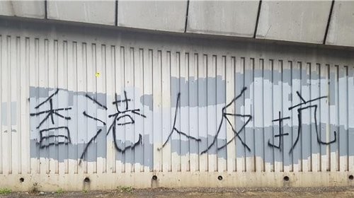 | ▲ 홍콩 도심의 '홍콩인이여 저항하라' 구호 지난 6일 홍콩 도심 벽에 정부의 복면금지법 시행에 반대하는 '홍콩인이여 저항하라' 구호가 적혀 있다. |