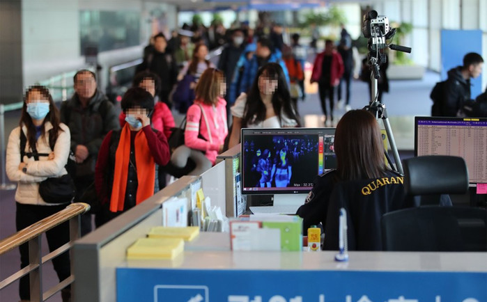 ▲ '중국 폐렴' 증상자 발생에 공항에서 지난 9일 인천국제공항 제1터미널 입국장에서 질병관리본부 국립검역소 직원들이 열화상 카메라로 중국 공항에서 출발해 인천공항에 도착한 승객들의 체온을 측정하고 있다. 연합뉴스 제공 |