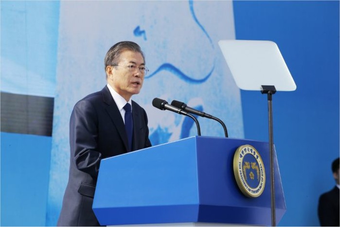 ▲ 문재인 대통령이 16일 오전 경남 창원시 경남대학교 운동장에서 열린 제40주년 부마민주항쟁 기념식에서 기념사를 하고 있다. 이번 기념식은 지난달 부마민주항쟁 발생일인 10월16일이 국가기념일로 지정되고 첫 정부주관 행사로 열렸다. |