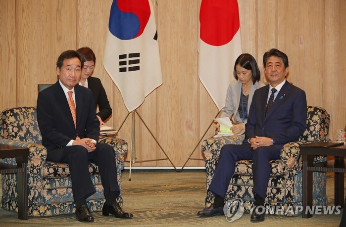 이낙연-아베 21분 회담 "한일관계 경색, 방치해선 안된다"
