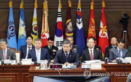 2일 서울 용산구 국방부 청사에서 열린 국회 국방위원회의 국방부 국정감사에서 정경두 국방부 장관이 오전 북한이 발사한 발사체와 관련해 현안 보고를 하고 있다 |