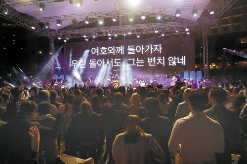 무대에 서는 유명 연예인도 자신의 인기를 내려놓고 겸손히 찬양을 올려드렸다. 투쟁과 음란의 해방구가 됐던 서울광장에서 거룩하신 하나님의 이름이 높여진 것이다. 하나님의 임재가 회중 가운데 강력하게 임했다.