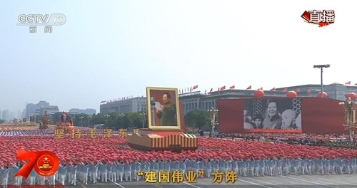한편, 열병식에 이어 이어 10만여명이 참석한 시민 퍼레이드에서는 대형 행렬이 마오쩌둥, 장쩌민, 후진타오 전 주석과 시진핑 주석의 대형 초상화를 들고 이들의 사상을 견지하겠다며 구호를 외쳤다.