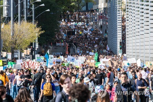 기후변화 대응 청년운동의 상징으로 부상한 스웨덴 '환경 소녀' 그레타 툰베리(16)의 외침에 호응, 세계 각지에서 수백만 명이 모여 '행동'을 촉구했다.