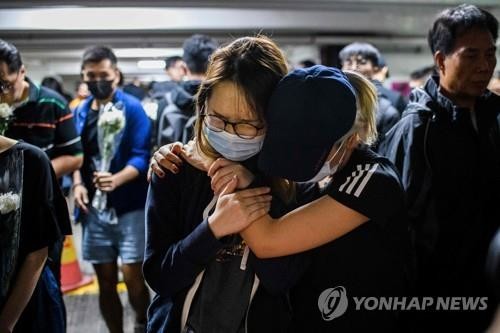 ▲ 숨진 대학생 추모하는 홍콩 시민들. AFP=연합뉴스 |