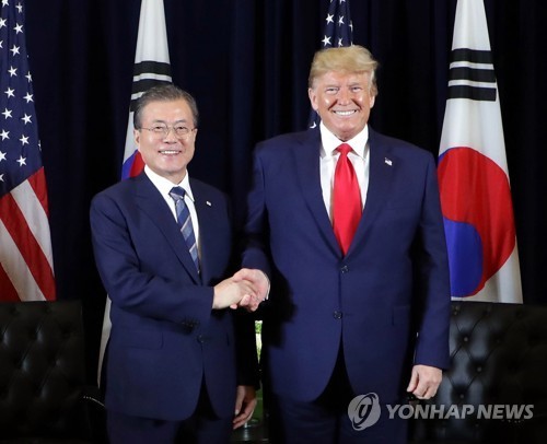 트럼프 "韓, 美의 최대 軍장비 구매국"…文대통령 "합리적 수준 방위비 분담"