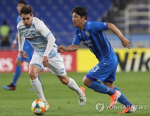 ▲ 울산 박주호가 역습 상황에서 드리블 돌파하고 있다./연합 |