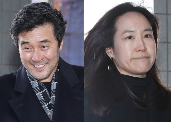 ▲ 보복운전 혐의로 1심에서 집행유예를 선고받은 배우 최민수가 19일 오후 서울 양천구 서울남부지방법원에서 열린 항소심 공판에 아내 강주은씨와 함께 출석하고 있다. |