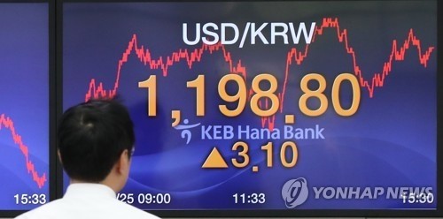 25일 원/달러 환율이 상승해 1,200원 눈앞에서 마감했다.