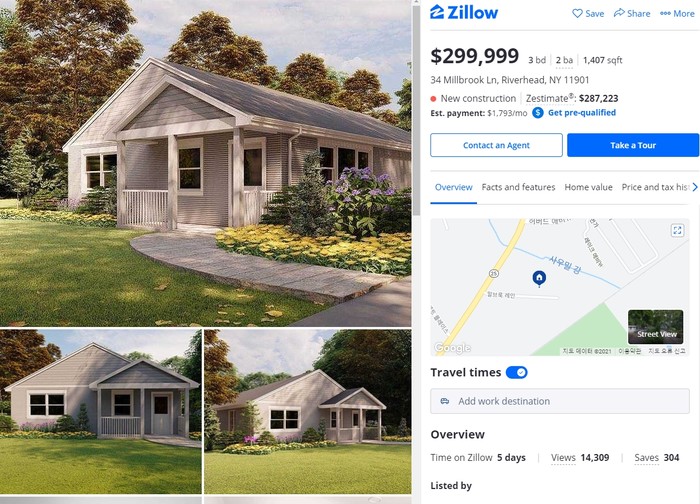 ▲ 3D 프린팅으로 8시간 만에 지은 주택이 미국 부동산 매물로 처음 등장했다/ 사진= 질로우 웹페이지 갈무리. |
