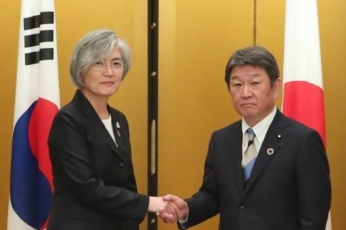 지난 9월 개각 때 미국과의 무역 협상을 잘했다는 평가를 받아 경제재생상에서 자리를 옮긴 모테기 외무상은 가장 최근에 한국의 지소미아 조건부 연장 결정 후인 지난 23일 나고야에서 열린 주요 20개국(G20) 외교장관 회의를 계기로 강 장관과 약 35분 동안 회담했다.