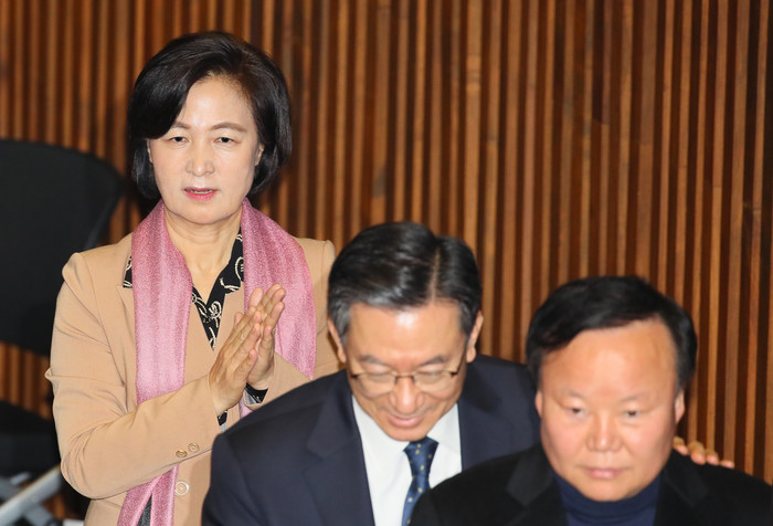 ▲ 추미애 법무장관 후보자가 10일 국회 본회의장에서 양정숙 국가인권위원회 신임 비상임위원에 대한 선출 투표를 마친 뒤 손을 모으고 자리로 향하고 있다. 연합뉴스 제공 |