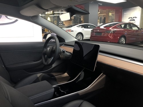 ▲중국산 테슬라 '터쓰라'의 내부 4일 중국 상하이 테슬라 매장에 전시된 모델3의 내부 운전석 모습. 연합뉴스 제공 |