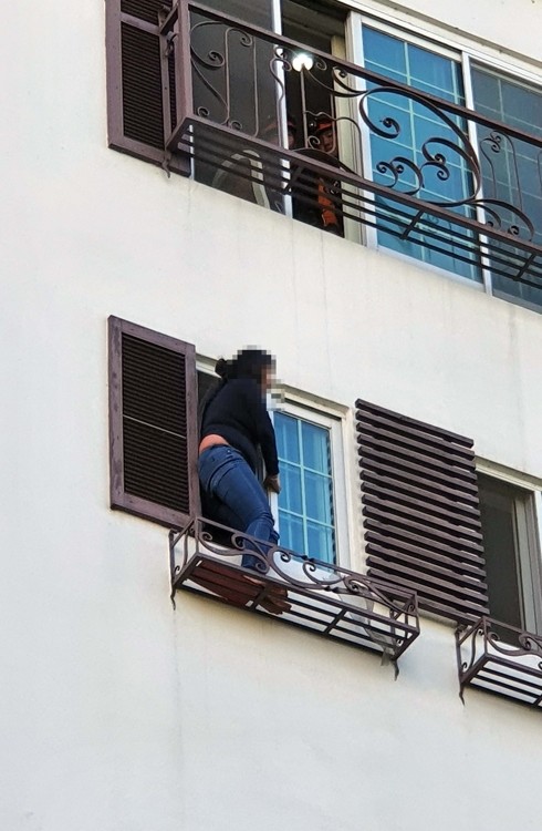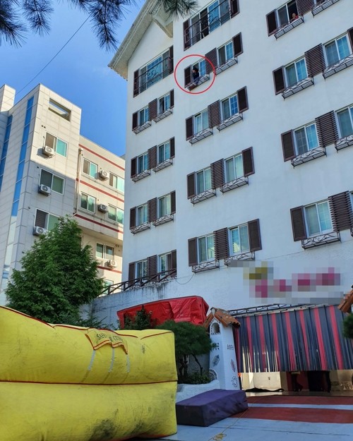 같은 시각 또 다른 구조대원들이 모텔 객실 문을 열고 들어가 창가에 매달려 있던 여성을 약 3시간 만에 구조했다.