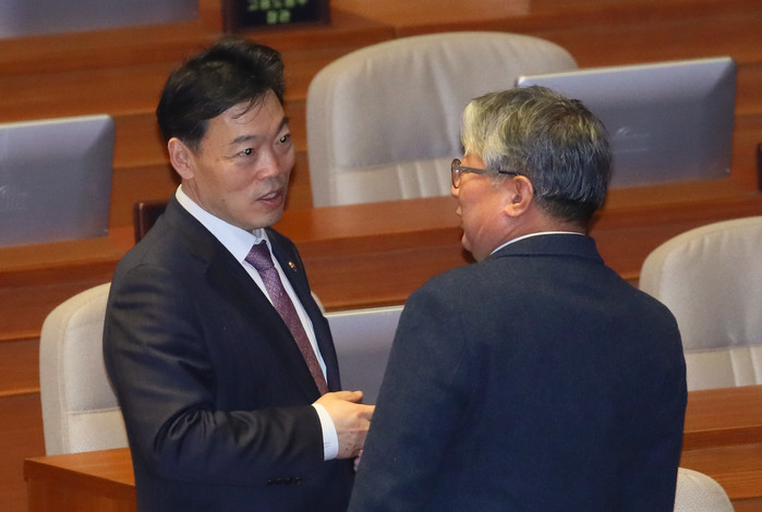 ▲ 이야기 나누는 김오수 조응천 김오수 법무부 차관(왼쪽)과 더불어민주당 조응천 의원이 9일 국회 본회의장에서 이야기를 나누고 있다. 2020.1.9 연합뉴스 제공 |