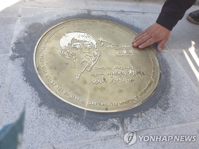 종묘공원에 설치된 이용석 노동열사 동판 |