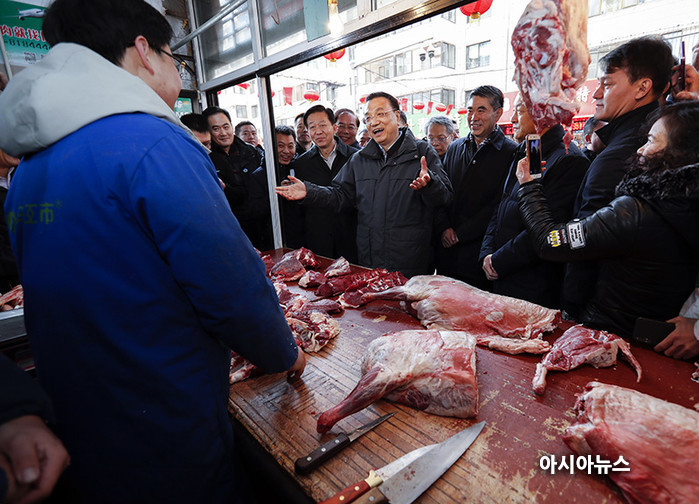 ▲ 리커창 중국 국무원 총리가 1월 21일 춘제 연휴를 앞두고 한 시장을 방문한 모습. 중국 국무원 제공 |