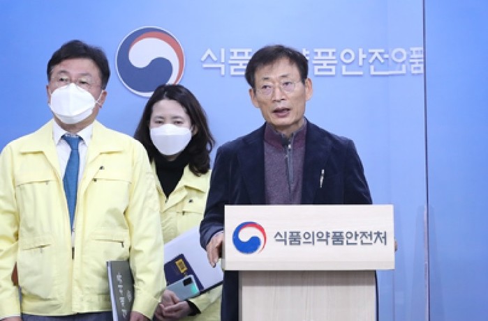 ▲ 중앙약사심의위원회 오일환(가톨릭의대 교수) 위원장(우측)이 27일 충북 청주시 오송읍 식품의약품안전처에서 열린 '셀트리온 코로나19 치료제 중앙약사심의위원회 회의' 결과에 대해 브리핑하고 있다/ 사진= 식약청 공식SNS 갈무리 |